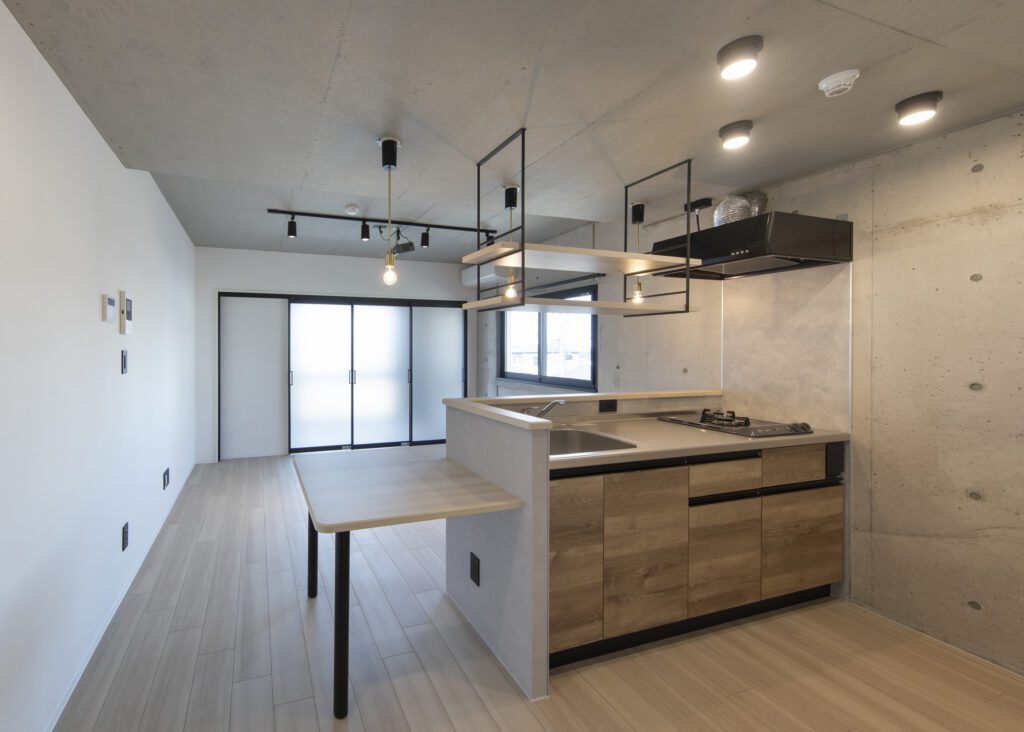 外観・内観ともにコンクリートの質感を生かし、素材そのものの色味に加えて白塗装を取り入れることで、洗練された印象を演出しています。